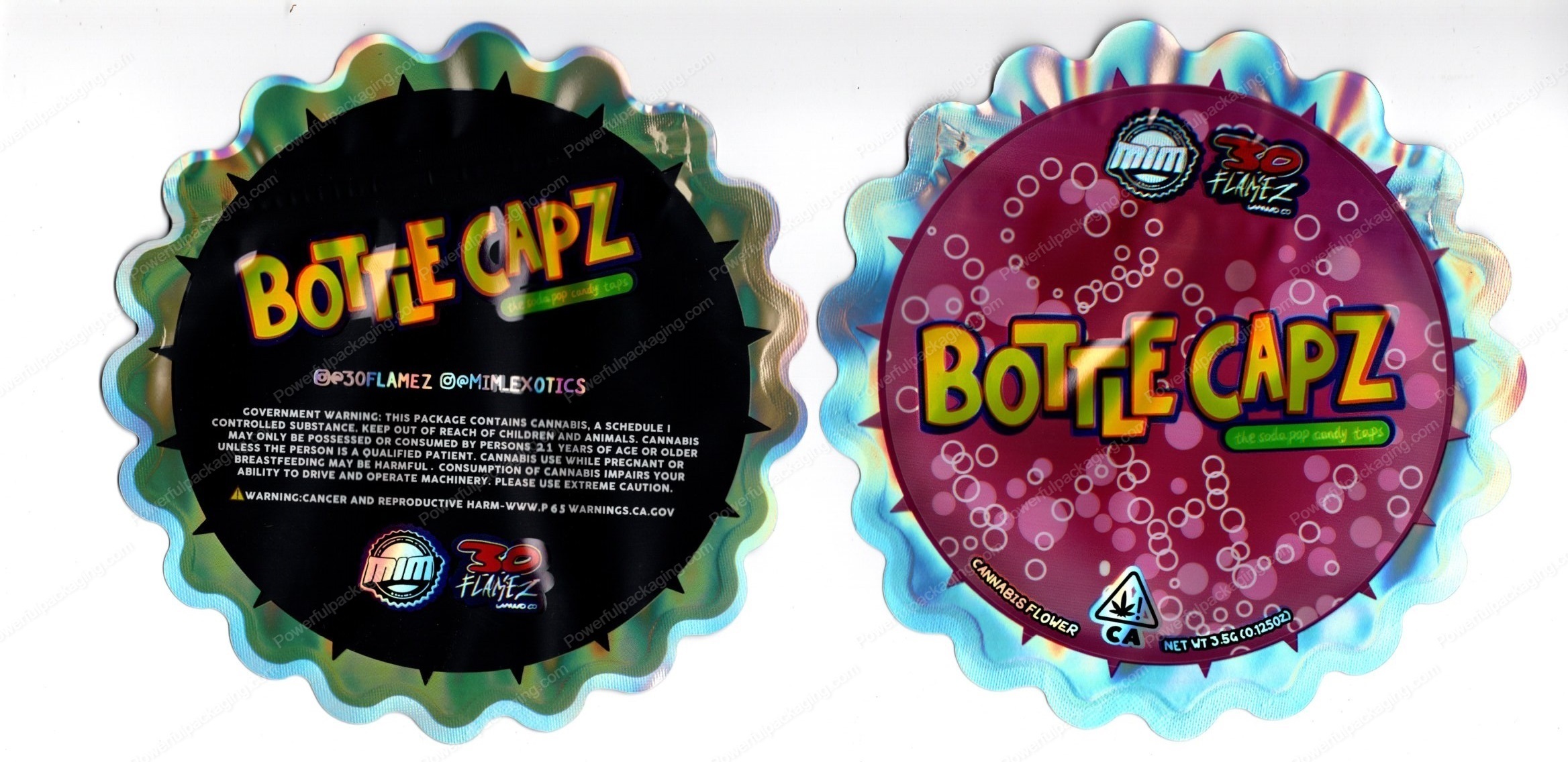 30Flamez : Bottle Capz Reflective 3.5 Mylar Shaped Bag Flower Packaging *Empty Bags* (#RC3)