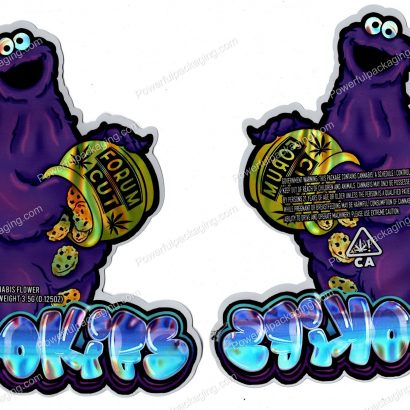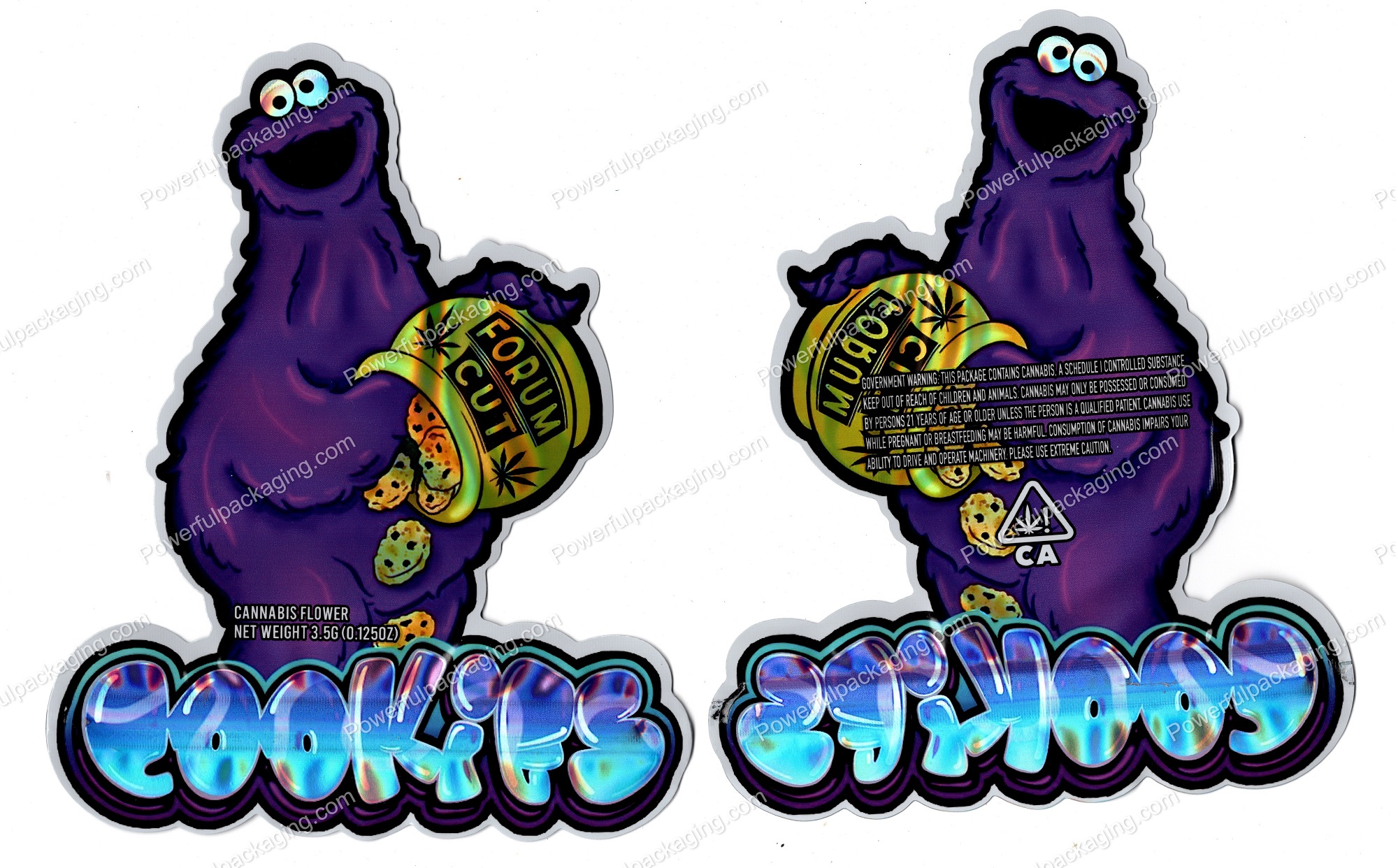 3D-Bag (Cookie Monster) Holographic Shaped Mylar Packaging
