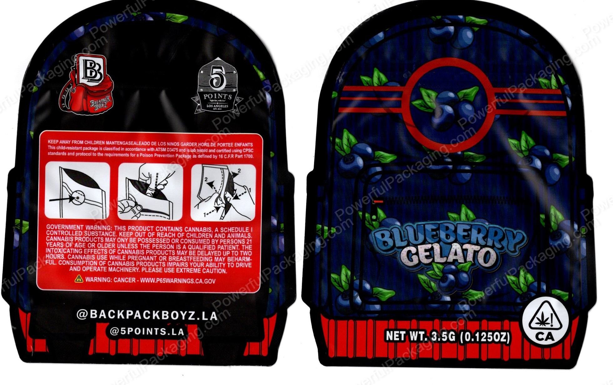 Backpack Boyz Blueberry Gelato Small Backpack Shaped (5×4.5in) 3D Mylar Bag 3.5g Flower Packaging *Empty Bags* (CAsupply)