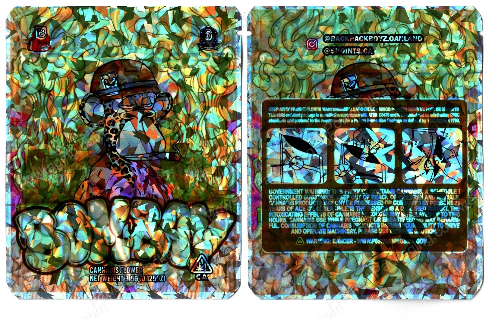 BACKPACK BOYZ : Bombay NFT Bored Ape Packaging 3.5 Mylar Bag