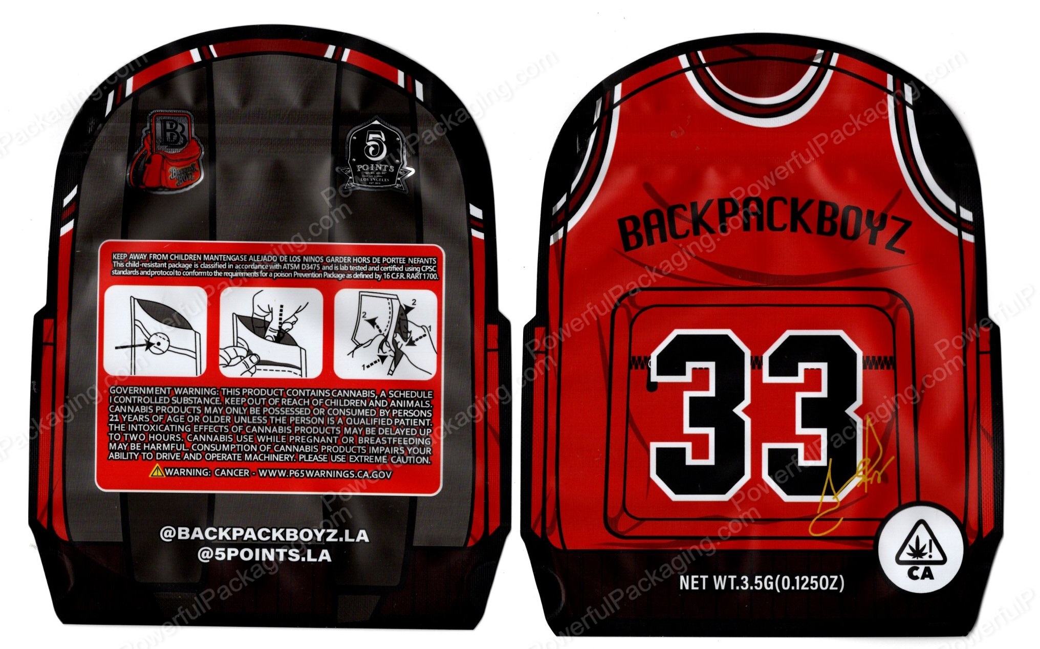 Backpack Boyz Jersey 33 Small Backpack Shaped (5×4.5in) 3D Mylar Bored Ape Shaped Bag 3.5g Flower Packaging