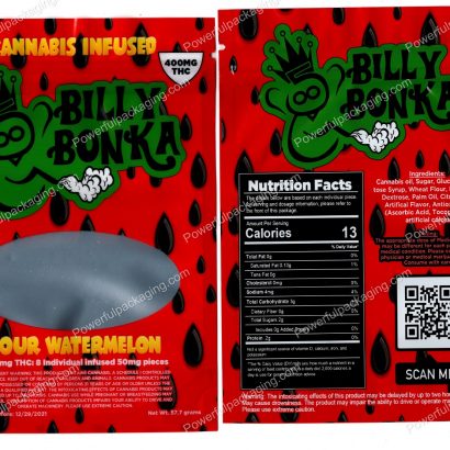 BILLY BONKA : Sour Watermelon 400mg Cannabis Infused Mylar (4.25x6in) Packaging