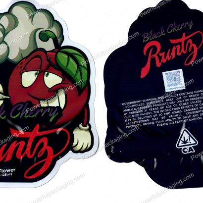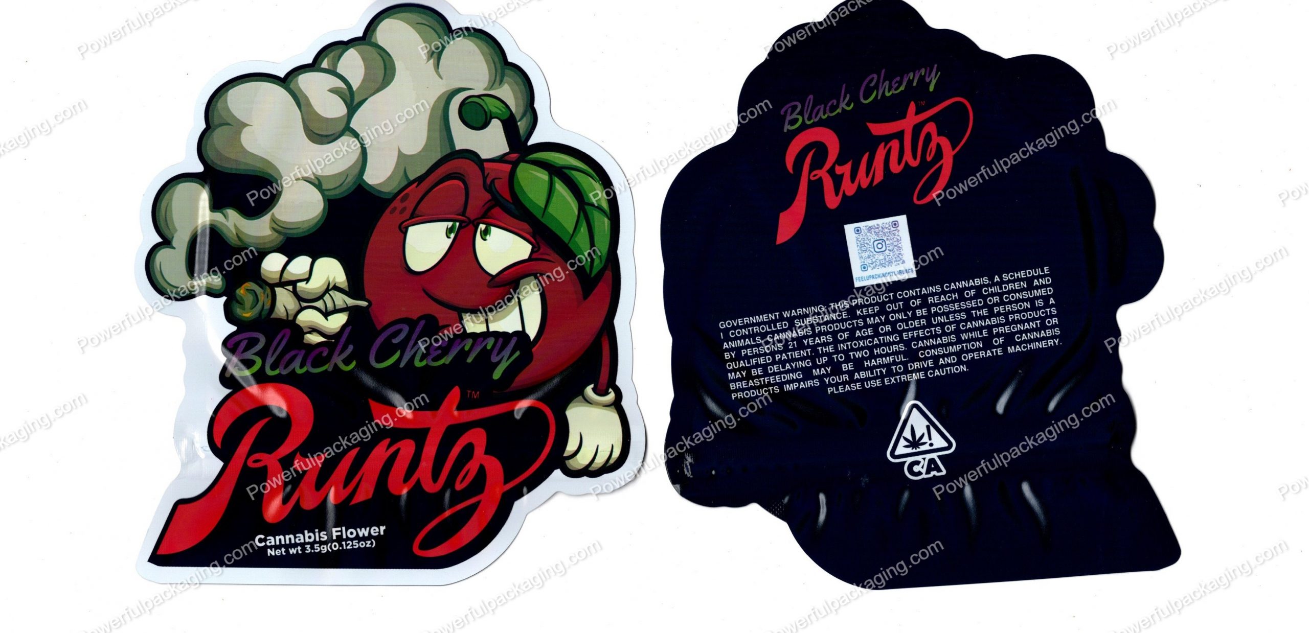 Black Cherry Runtz Generic 3D Mylar Shaped Bag 3.5g Flower Packaging