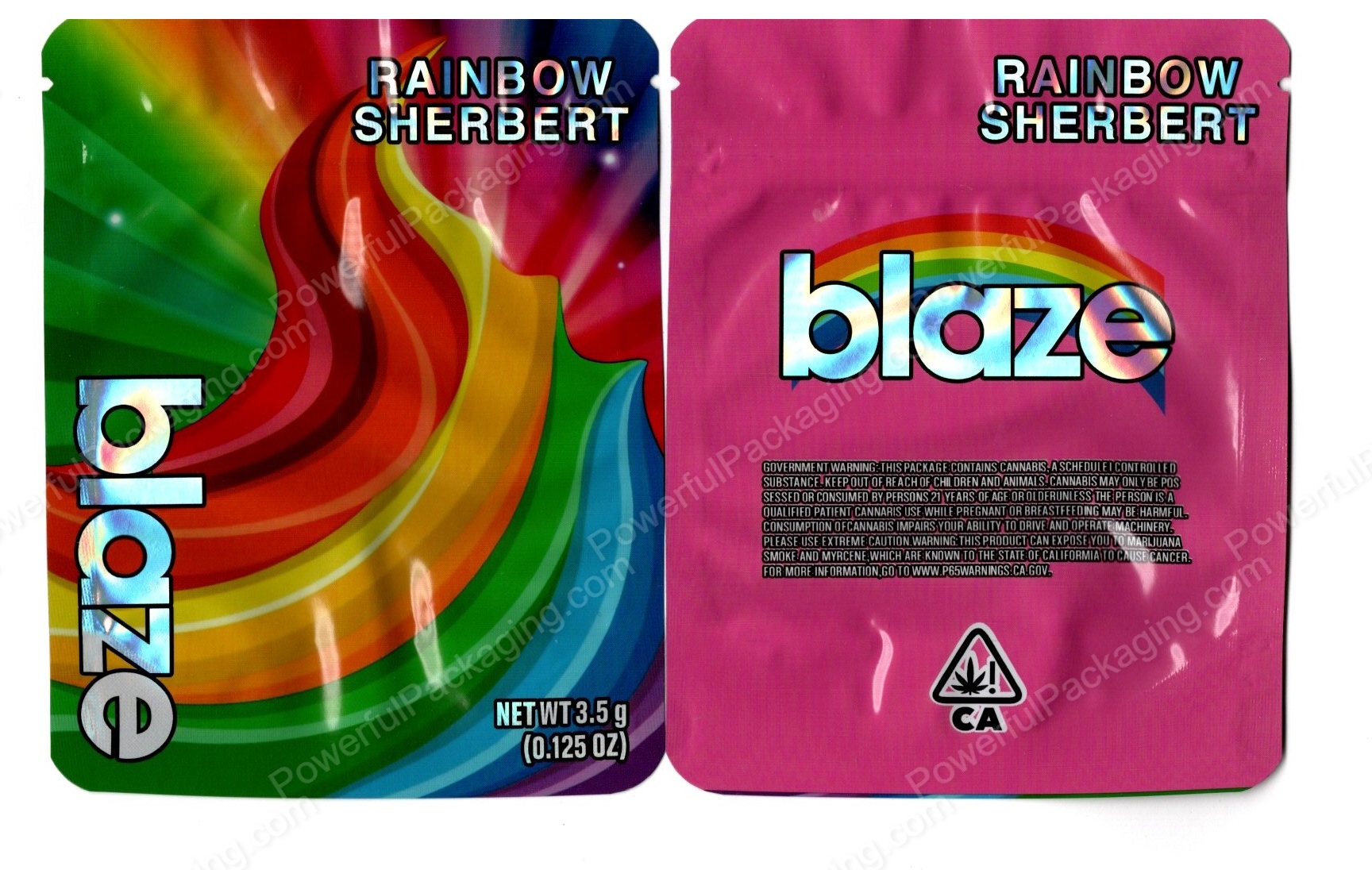 Blaze : Rainbow Sherbert Holographic Flower Packaging 3.5 Mylar Bag