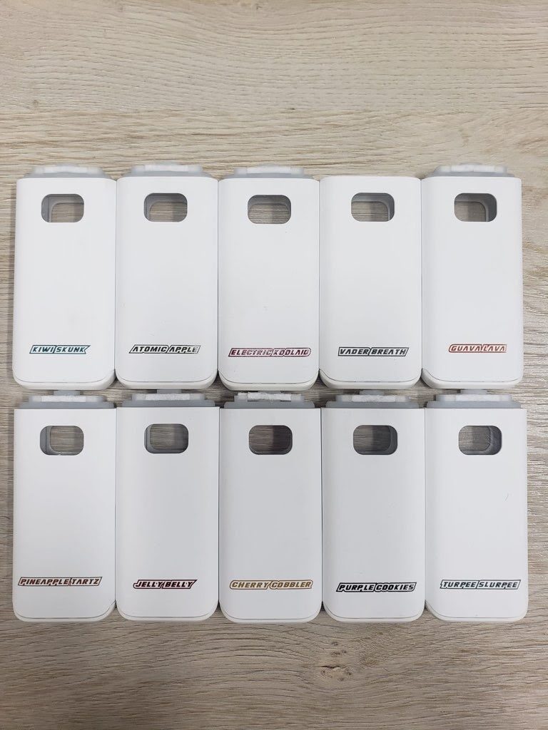 Master pack comes with 10 2gram disposables, the Master Case includes the following Flavors : Kiwi Skunk, Atomic Apple, Elevtric Xoolaid, Vader Breath, Guava Lava, Pineapple Tartz, Jelly Belly, Cherry Cobbler, Purple Cookies, Turpee Slurpee