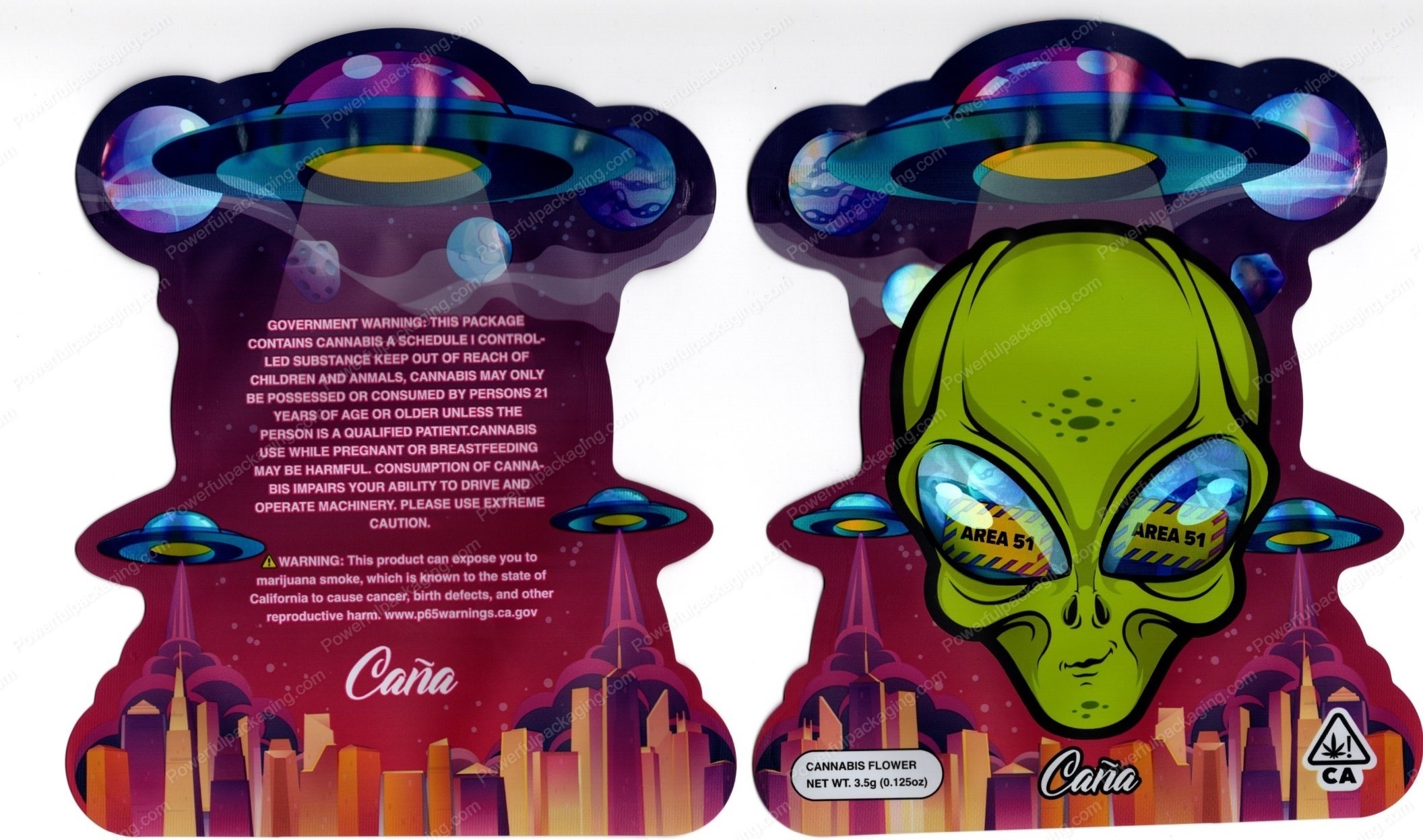 Cana : Area 51 Alien Reflective 3.5 Mylar Shaped Bag Flower Packaging *Empty Bags* (#RC3)