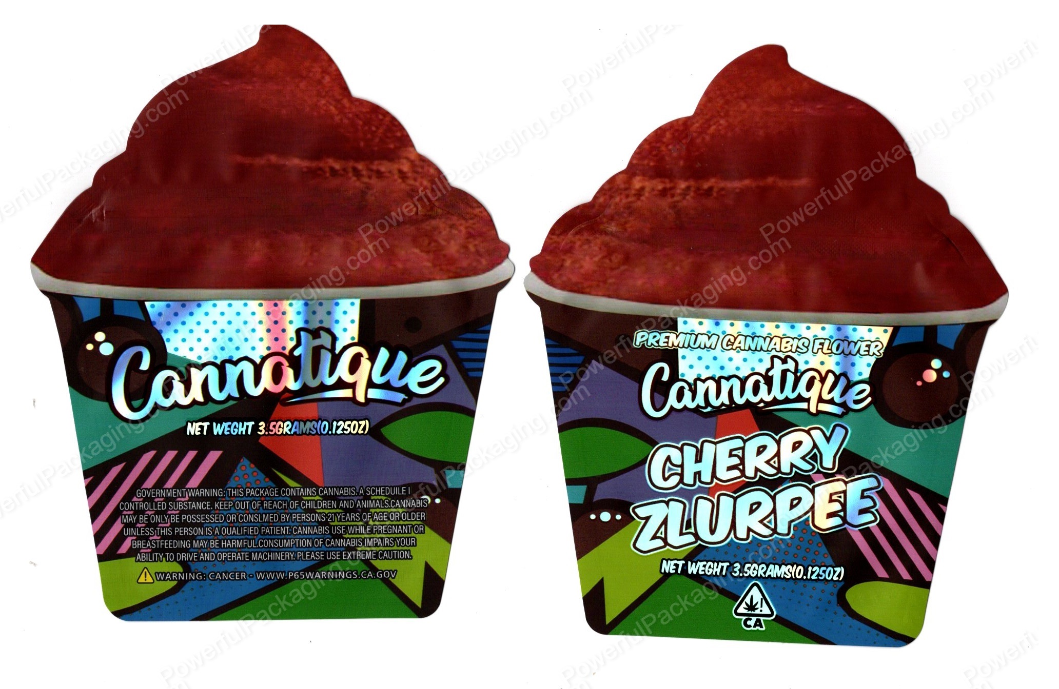 Cannatique Cherry Zlurpee 3D Mylar Shaped Bag 3.5g Flower Packaging