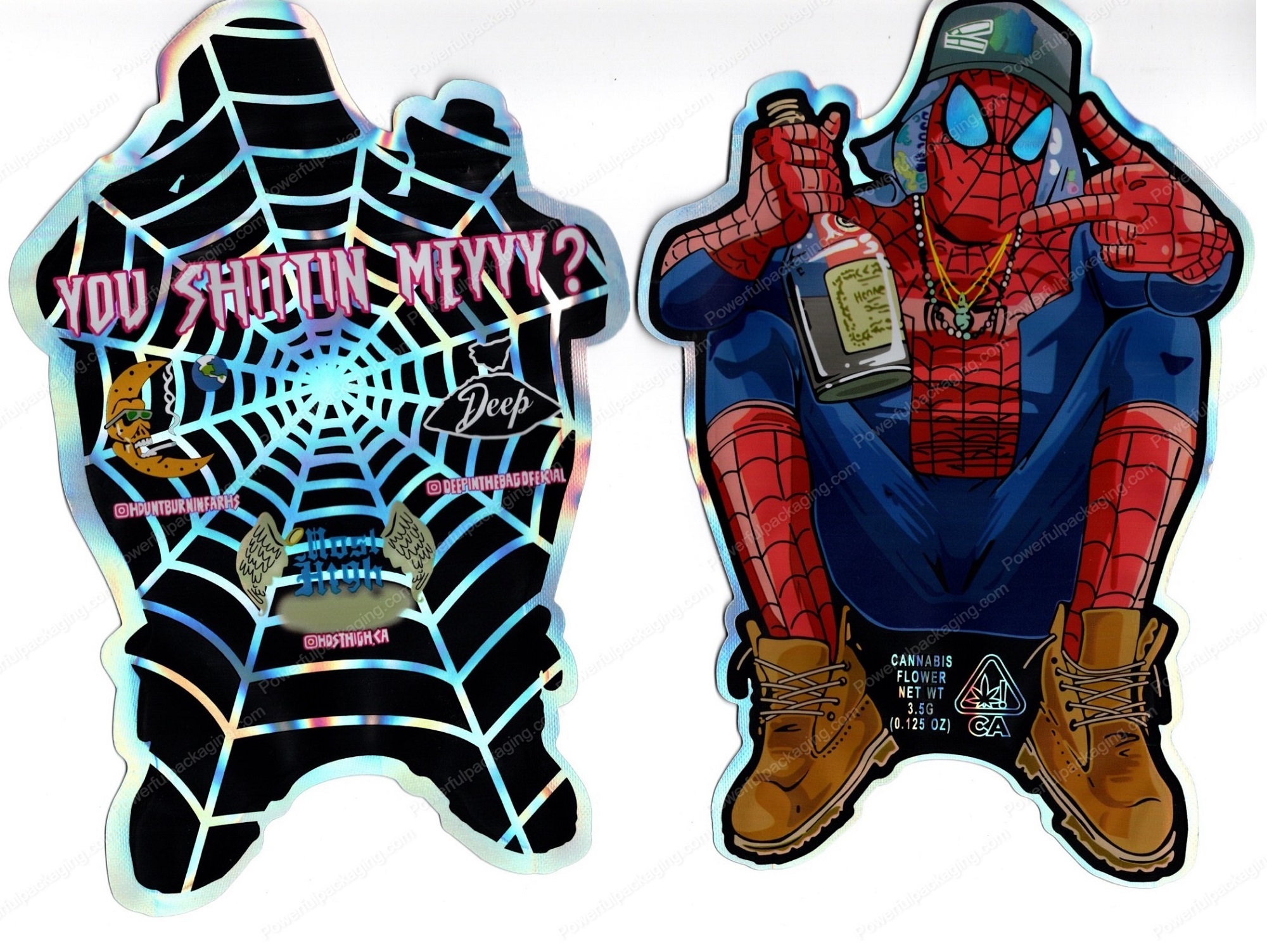 Deep : Hood Spiderman Reflective 3.5 Mylar Shaped Bag Flower Packaging *Empty Bags* (#RC3)