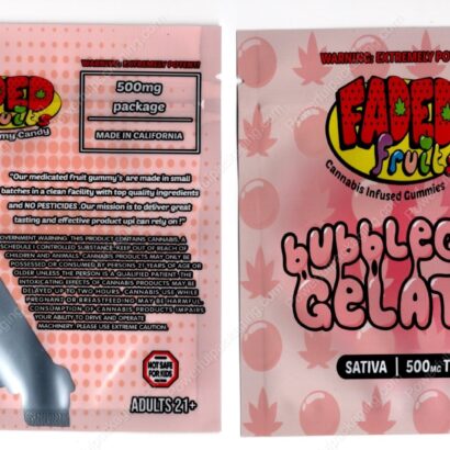 FADED fruits : bubblegum Gelato (Sativa 500mg) THC Gummies Edible Mylar Bag *Empty Bags* (CaSupply) (#C3S)