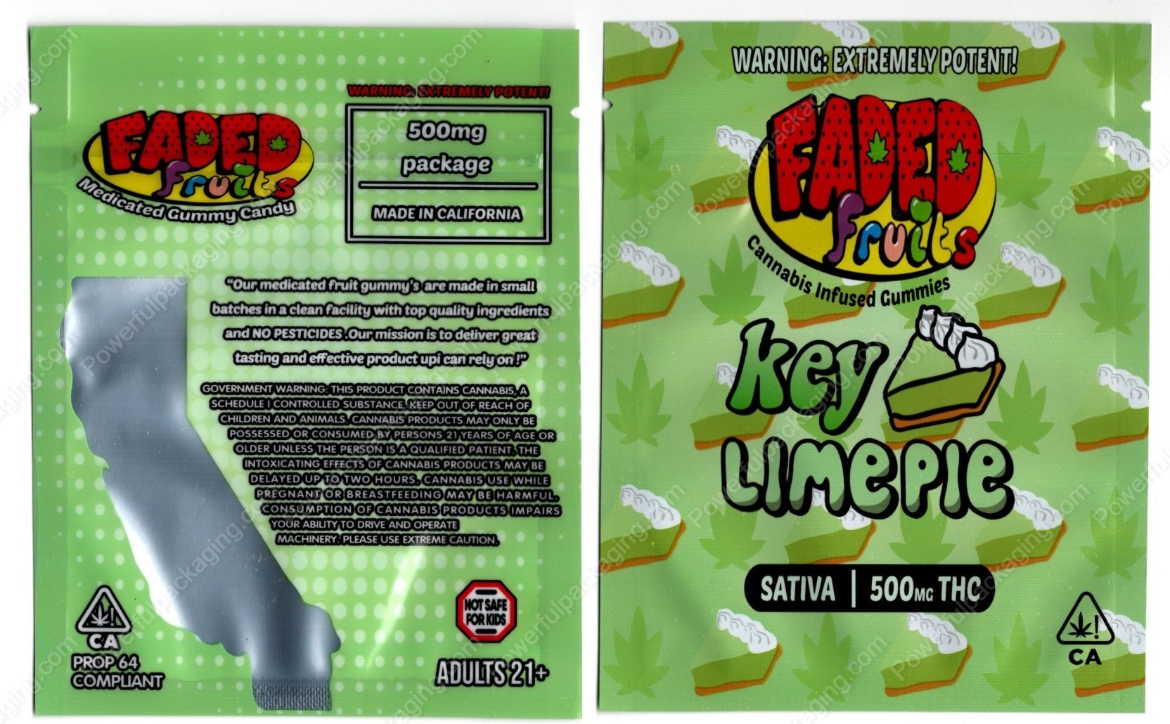 FADED fruits : Key Lime Pie (Sativa 500mg) Gummies Edible Mylar Bag *Empty Bags* (CaSupply) (#C3S)