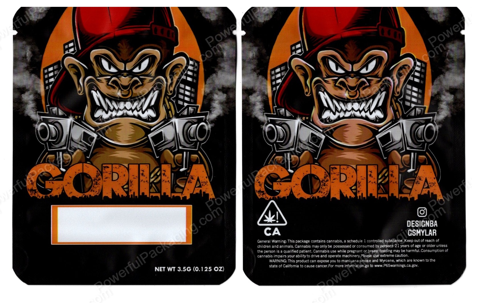 Gorilla Machine Gun Flower Packaging 3.5 Holographic Mylar Bag