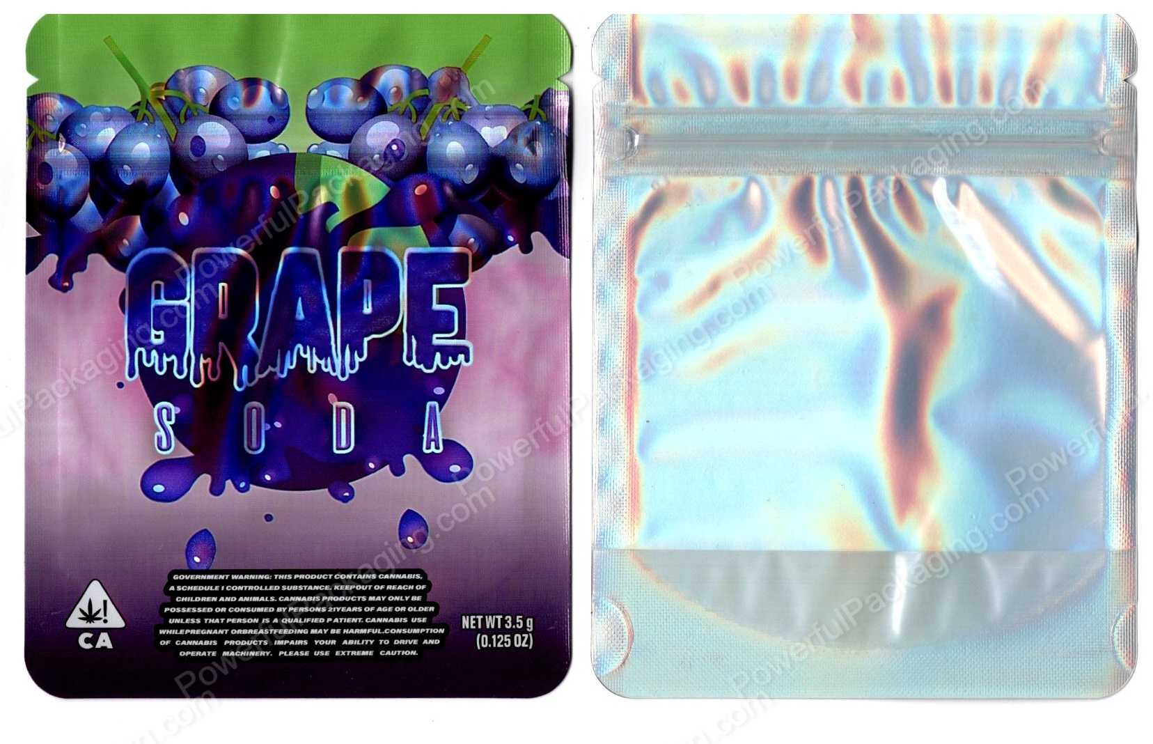 Grape Soda Holographic Generic Flower Packaging 3.5 Mylar Window Bag
