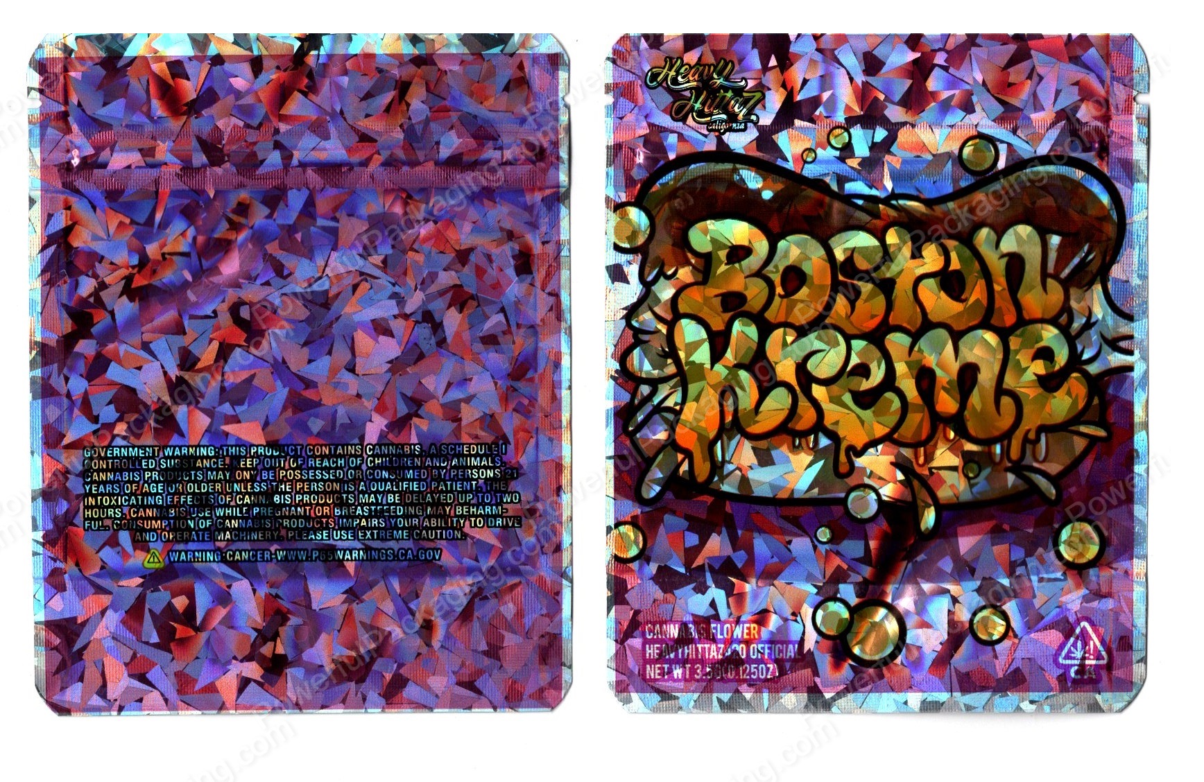 Heavy Hittaz Boston Kreme Holographic Flower Packaging 3.5 Holographic Mylar Bag