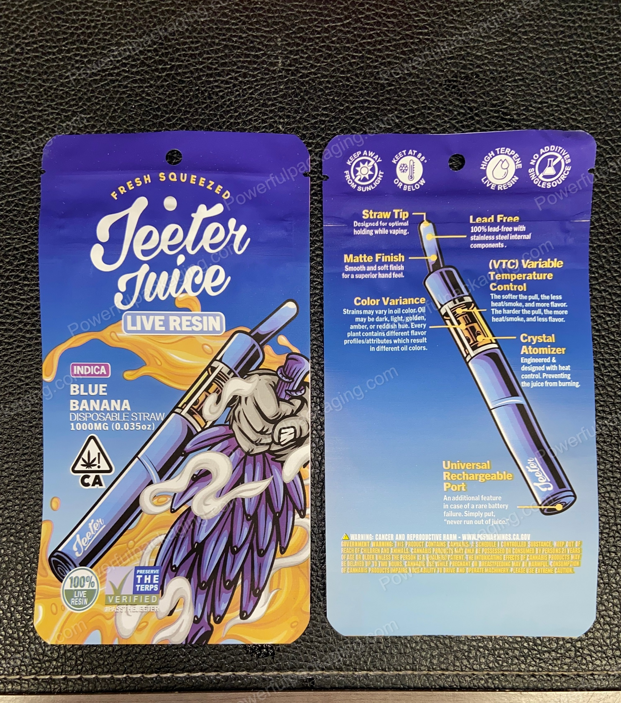 Jeeter Juice Disposable Blue Banana 1000mg Live Resin Cart Packaging Complete Set (Carts, Packaging, stickers and Foam Cusions)