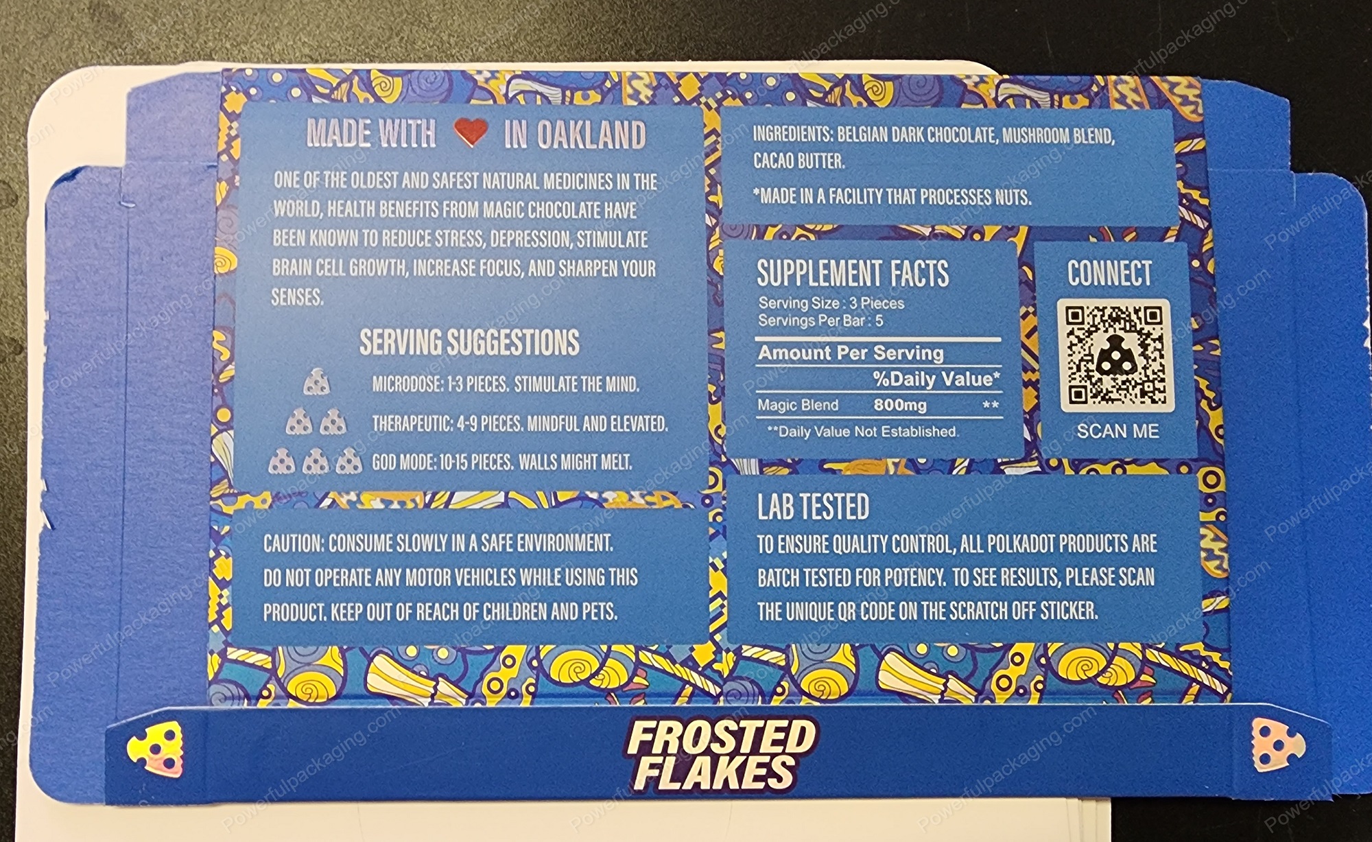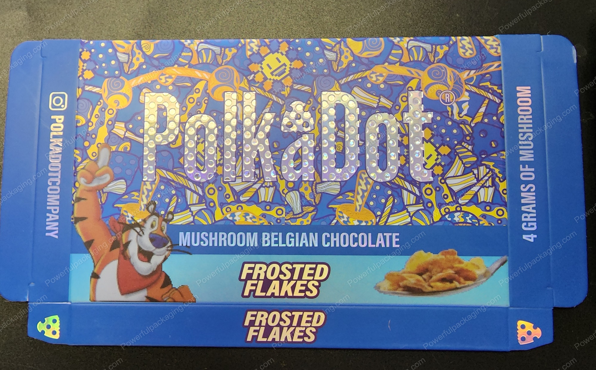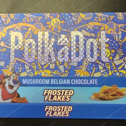 - Large PolkaDot Magic Mushroom Belgain Chocolate : Frosted Flakes 4g 10-Pack with Master Case and Sleeve (5.5×3.5in) *Empty Box* (CaSupply)