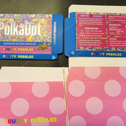 - Large PolkaDot Magic Mushroom Belgain Chocolate : Fruity Pebbles 4g 10-Pack with Master Case and Sleeve (5.5×3.5in) *Empty Box*