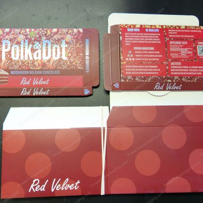 - Large PolkaDot Magic Mushroom Belgain Chocolate : Red Velvet 4g 10-Pack with Master Case and Sleeve (5.5×3.5in) *Empty Box*