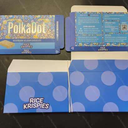 - Large PolkaDot Magic Mushroom Belgain Chocolate : Rice Krispies 4g 10-Pack with Master Case and Sleeve (5.5×3.5in) *Empty Box*