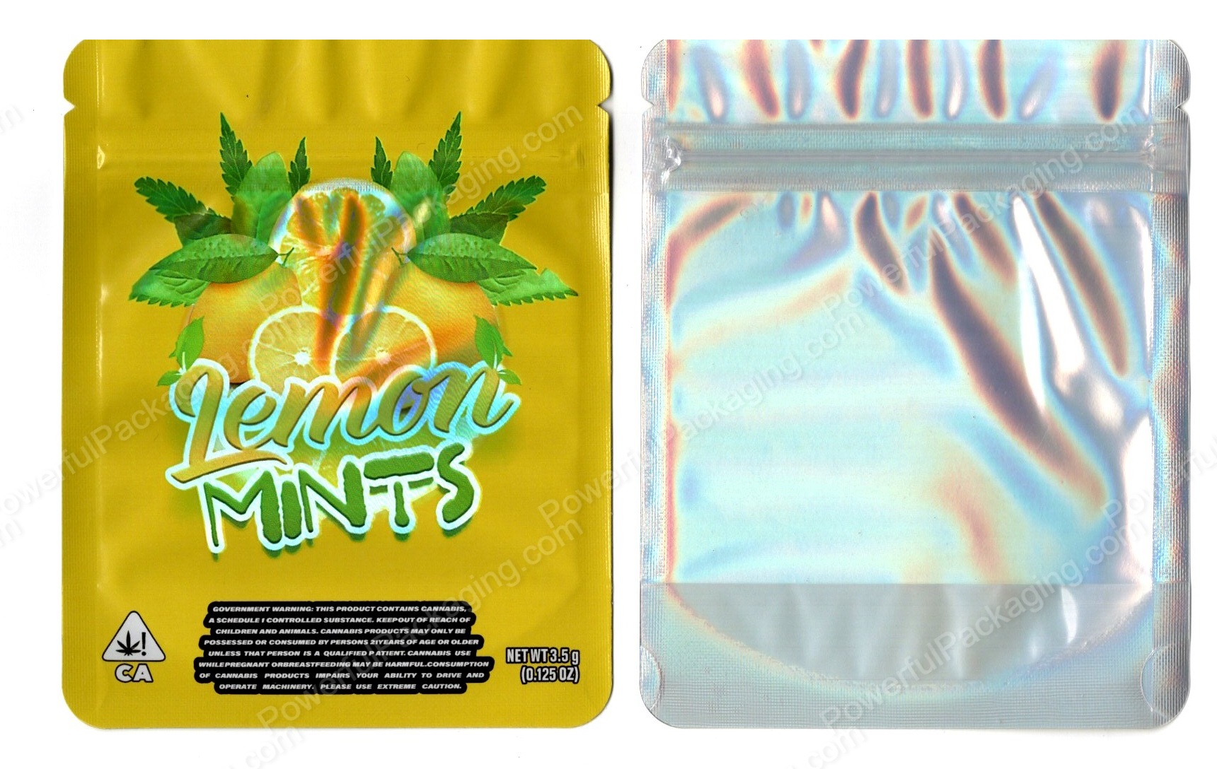 Lemon Mintz Holographic Generic Flower Packaging 3.5 Mylar Window Bag
