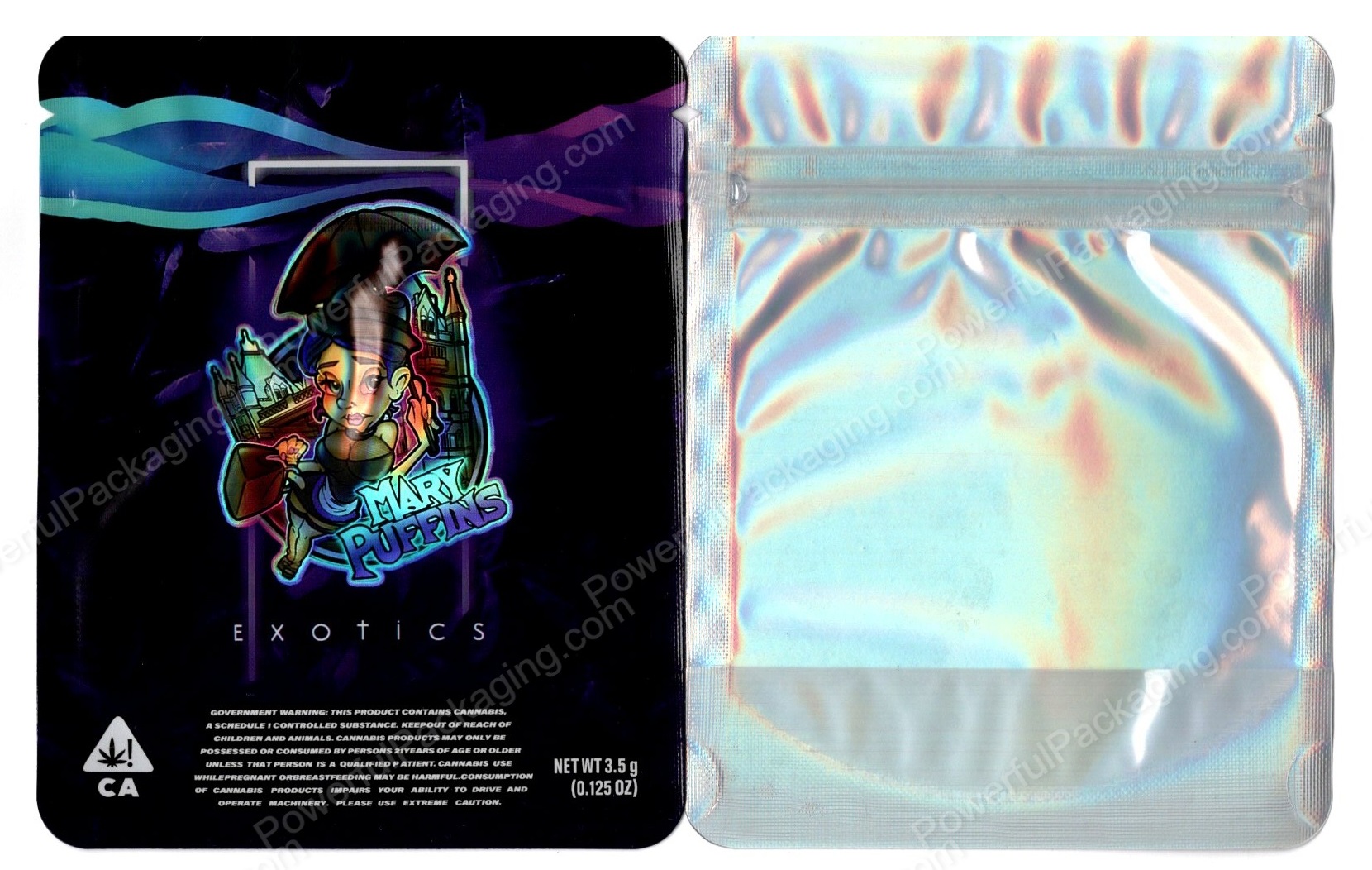 Merry Puffins Exotics Holographic Generic Flower Packaging 3.5 Mylar Window Bag