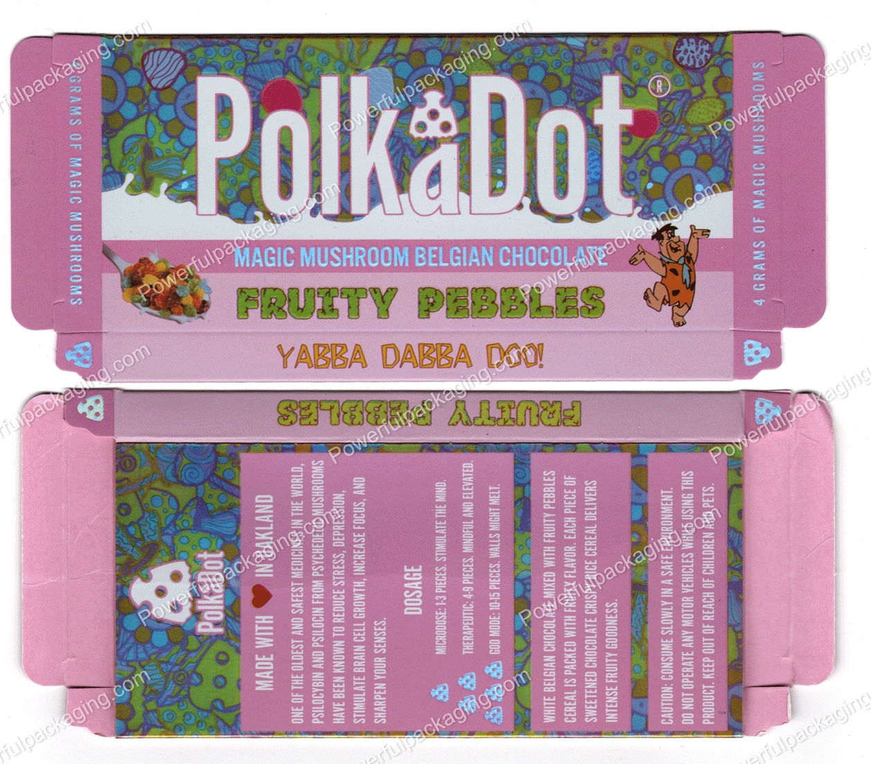 - PolkaDot Magic Mushroom Belgain Chocolate : Fruity Pebbles Yabba Dabba Doo! 4g 10-Pack with Display Case (5×2.5in) *Empty Box* (CaSupply)