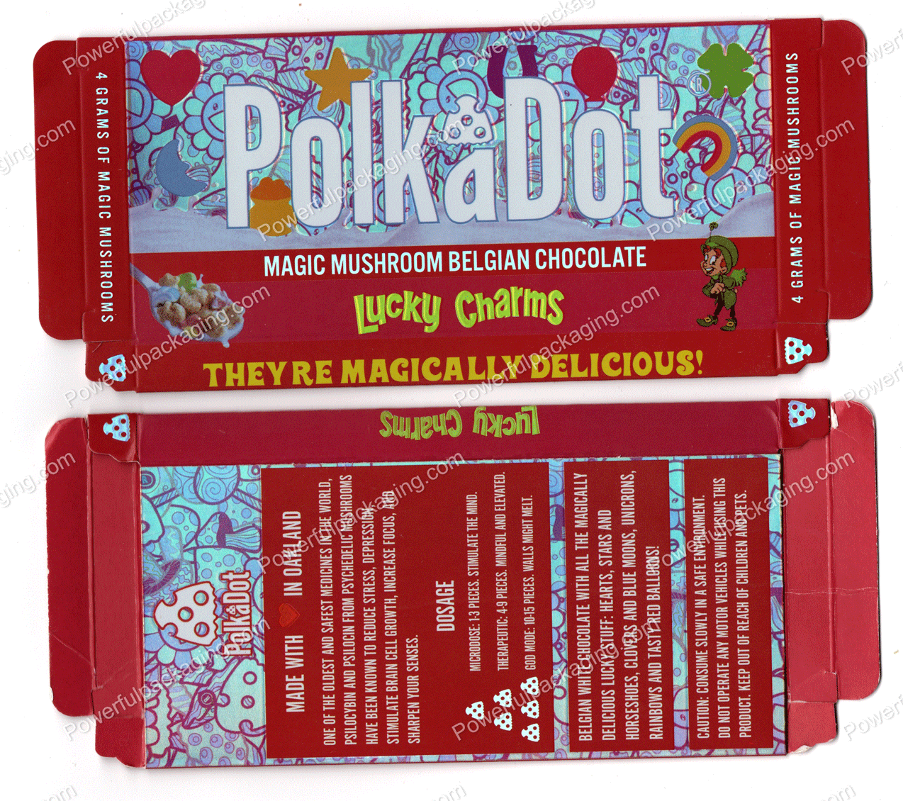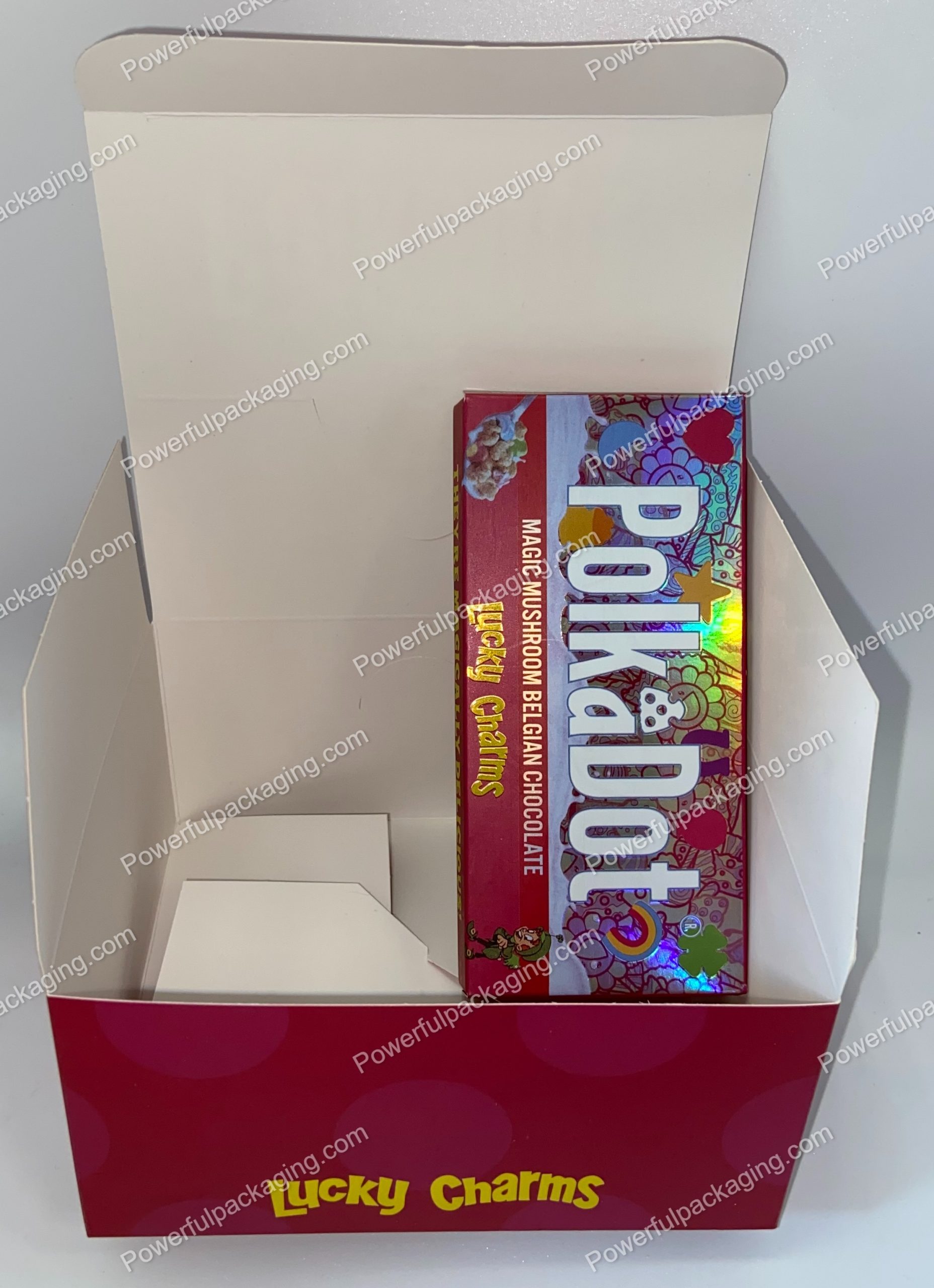 PolkaDot Magic Mushroom Belgain Chocolate : Lucky Charms Theyre Magically Delicious! 4g 10-Pack with Display Case (5×2.5in) *Empty Box* (CaSupply)