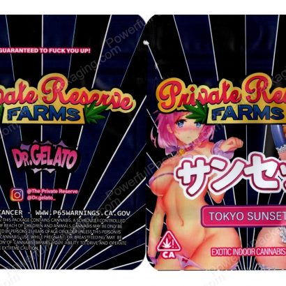 Private Reserve Farms Tokyo Sunset Anime Flower Packaging 3.5 Mylar Bag *Empty Bags*