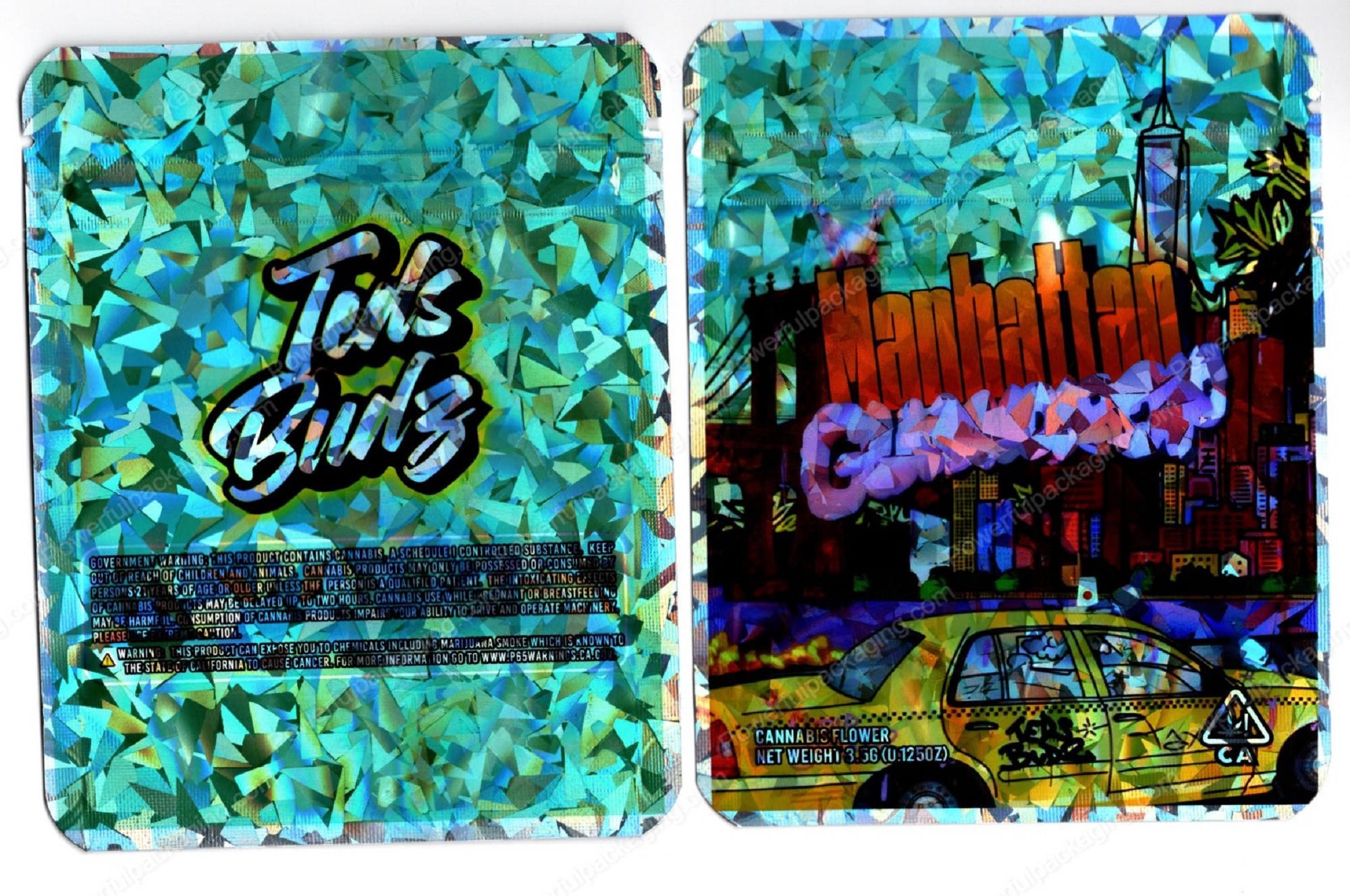 Teds Budz Manhattan Gumdrop Holographic Flower Packaging 3.5 Mylar Bag