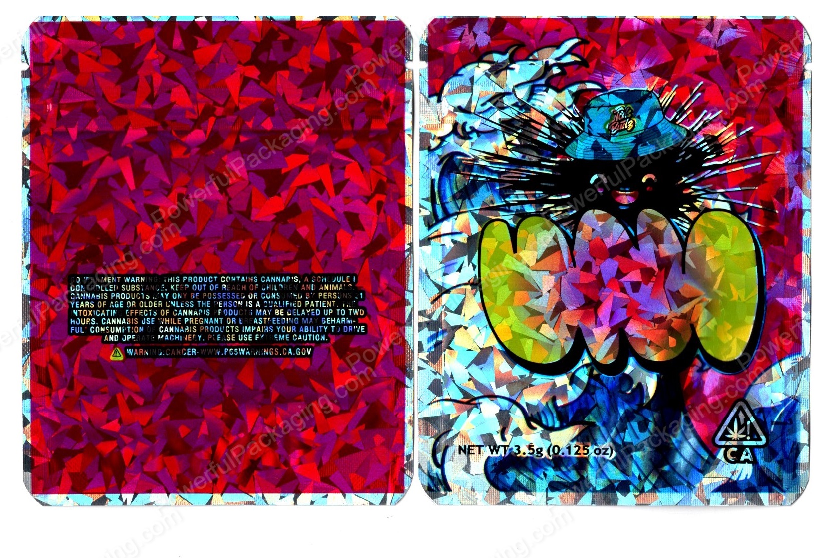 Teds Budz UNI Holographic Flower Packaging 3.5 Holographic Mylar Bag
