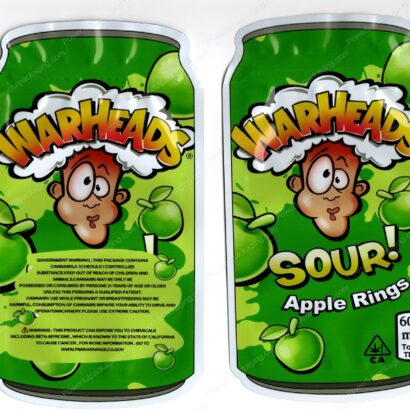 WARHEADS : Sour Apple Rings Can 600mg THC Mylar Shaped Bag Edibles Packaging *Empty Bags* (#RC3)
