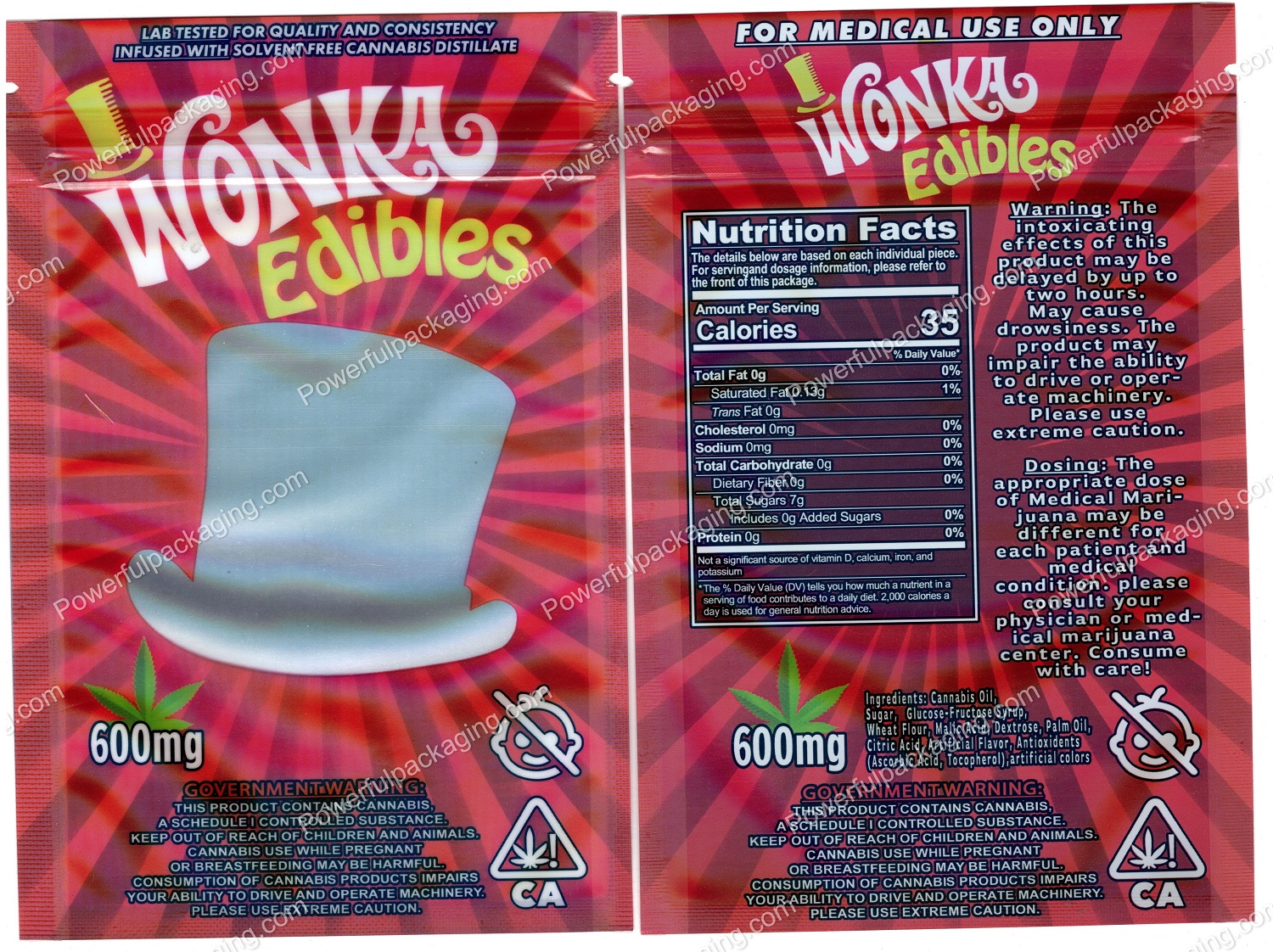 Wonka Edibles (Red) 600mg Mylar (6x4in) Packaging
