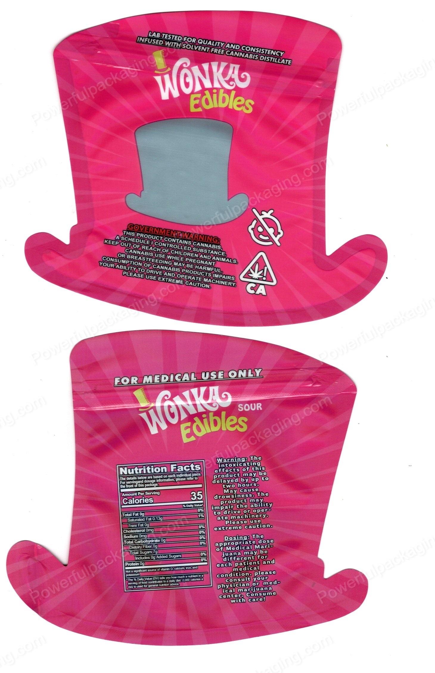 Wonka Sour Edibles Pink Hat 3D Shaped Mylar Packaging