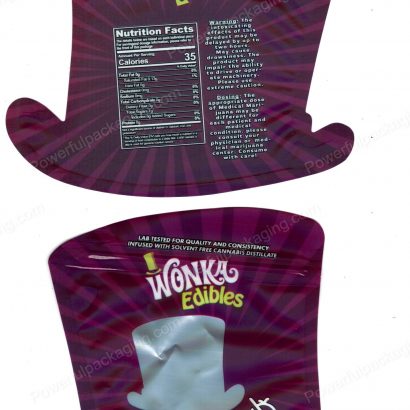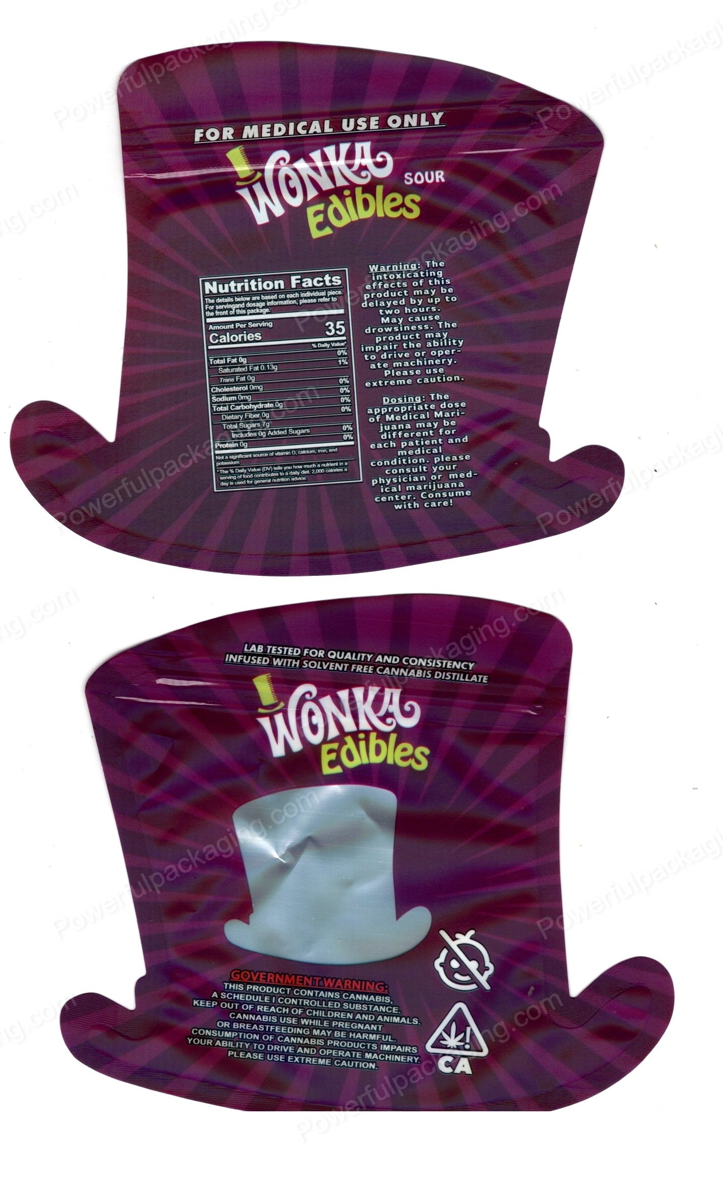 Wonka Sour Edibles Purple Hat 3D Shaped Mylar Packaging